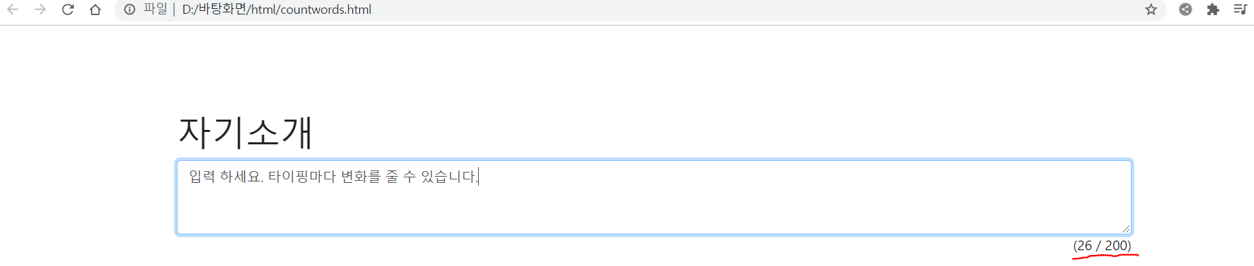 document.getElementById('count').innerHTML = '(' + content.length + ' / 200)';