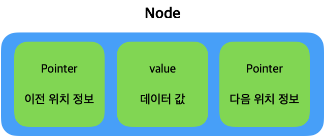node 안에는 데이터 값인 value와 다른 node의 위치 정보(컴퓨터 메모리 주소)를 가진다.