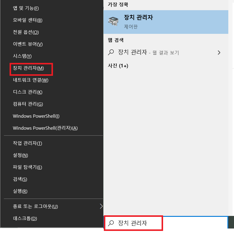 winํค + x -> "์ฅ์น ๊ด๋ฆฌ์" ํด๋ฆญ ํน์ ์ปดํจํฐ ํ๋จ ๊ฒ์ ์ฐฝ์ "์ฅ์น ๊ด๋ฆฌ์"๋ฅผ ๊ฒ์์ ํ์.