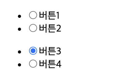 <li><input type="radio" name="btn2" >버튼4</li>