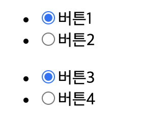 <li><input type="radio" name="btn1" >버튼2</li>